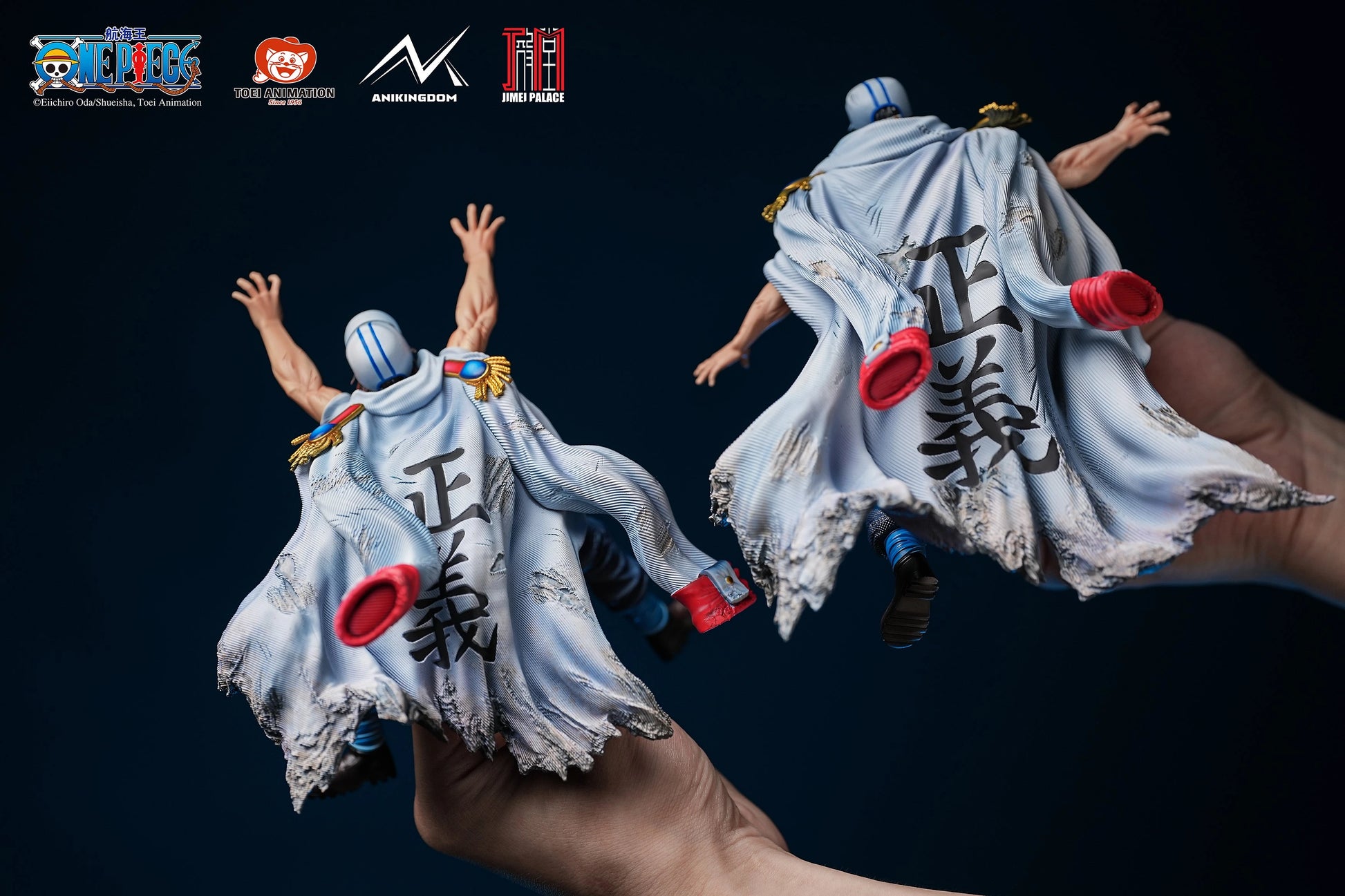 Escultura dinámica: Se aprecia cómo Akainu queda hundido bajo el impacto del ataque, transmitiendo realismo y dramatismo a la escena.