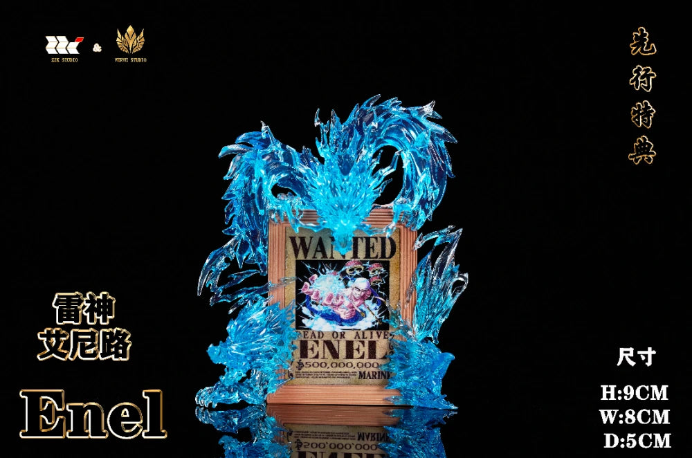 ZZK & Verve Estudio presenta con gran maestría a Enel, en una representación que fusiona su divinidad y su devastadora técnica, convirtiendo esta pieza en una auténtica obra de arte para coleccionistas exigentes.