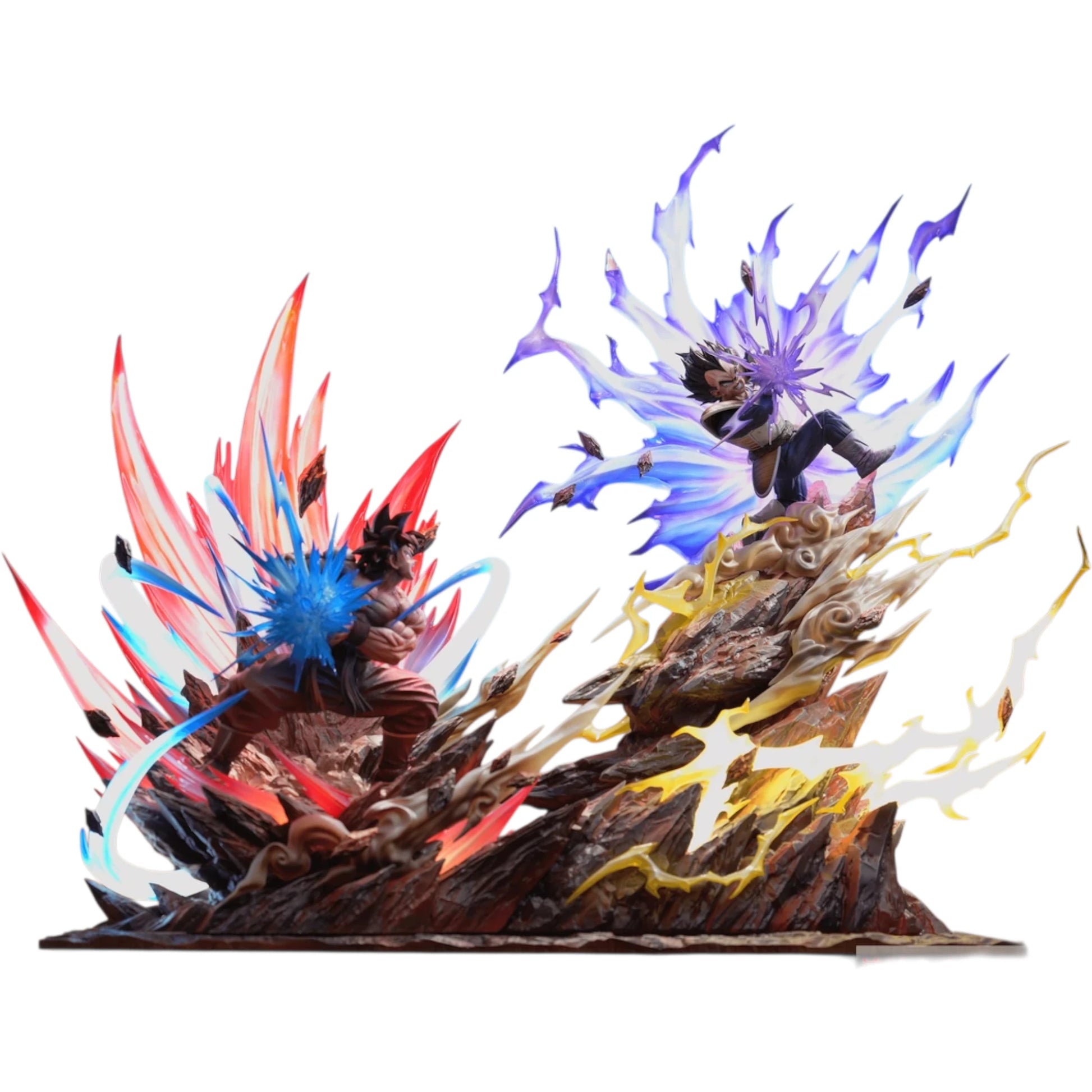 El primer enfrentamiento entre Goku y Vegeta cobra vida en esta impresionante figura de resina creada por XiaFanShang Studio, una escena que marcó para siempre la historia de Dragon Ball. Esta pieza captura el instante decisivo donde ambos guerreros liberan todo su poder en un duelo que definió el destino de la Tierra.