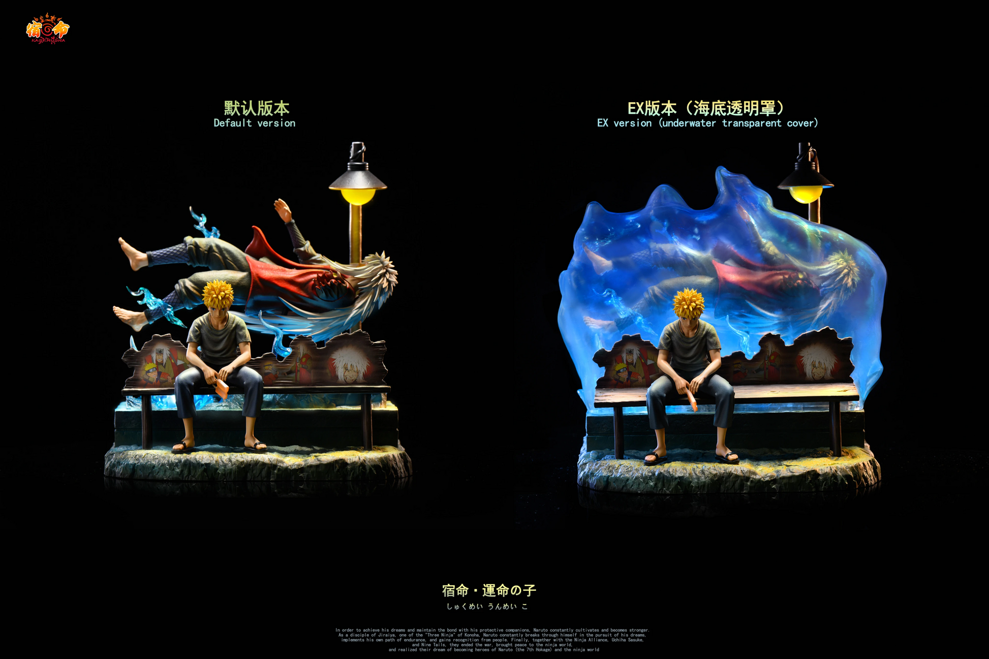 Cubierta transparente adicional: Representa a Jiraiya bajo el agua en un efecto subacuático de color azul.